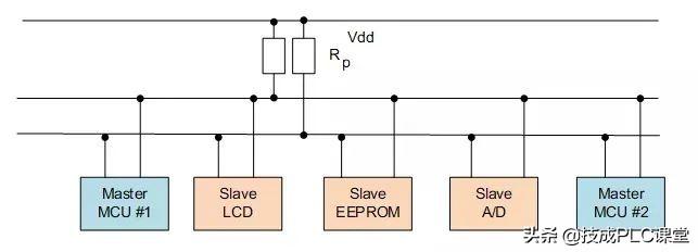 该总线可以将多个I2C设备连接到该系统上。连接到I2C总线上的设备既可以用作主设备,也可以用作从设备。