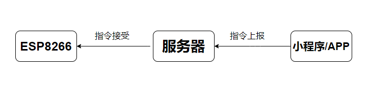 在物联网终端产品中,esp8266 wifi设备是怎么和小程序通信的呢? 对于这一类产品,厂家都有一个后台服务器,esp8266工作在STA模式, 连接wifi热点后,即可具备联网功能,和服务器通信,数据上报,之后小程序或者APP,从服务器中获取数据。如下图: