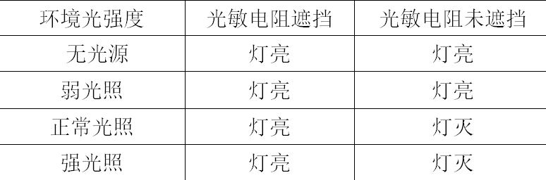 表1 环境明暗自动开关灯测试结果