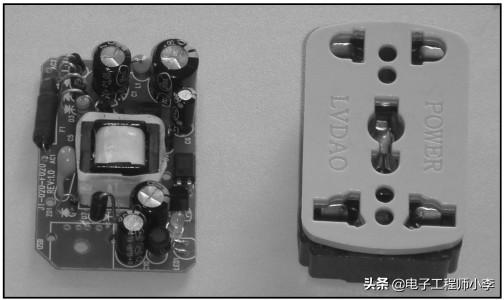 (3)从废旧手机充电器上取出里面的电路板作为系统的供电电源,取废旧插线板里的插座单元,作为输出插座,如图6.11所示,并把它们安装在机壳的相应位置上。