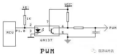 51系列单片机无PWM输出功能,可以采用定时器配合软件的方法输出。对精度要求不高的场合,非常实用。电路图见图一,采用了高速光隔(6N137)输出,并将PWM的信号倒相。