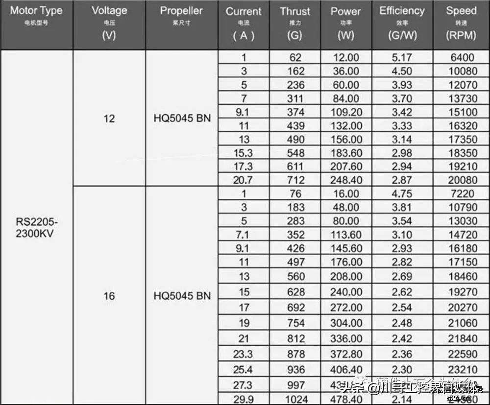 由公式得出两个结论:在同功率下,电压越高电流越小,并推出:在同功率下,电压越高发热量越小。最后得出结论:同一个飞行器,使用的电压越高,电流越小并且发热越少,效率越高。