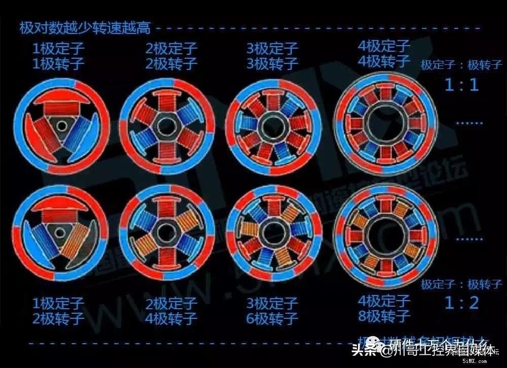 当磁极对数一定时,如果改变交流电的频率,则可改变旋转磁场的同步转速,这就是变频调速的基本原理。由于电机的磁极是成对出现的,所以也常用极对数表示。