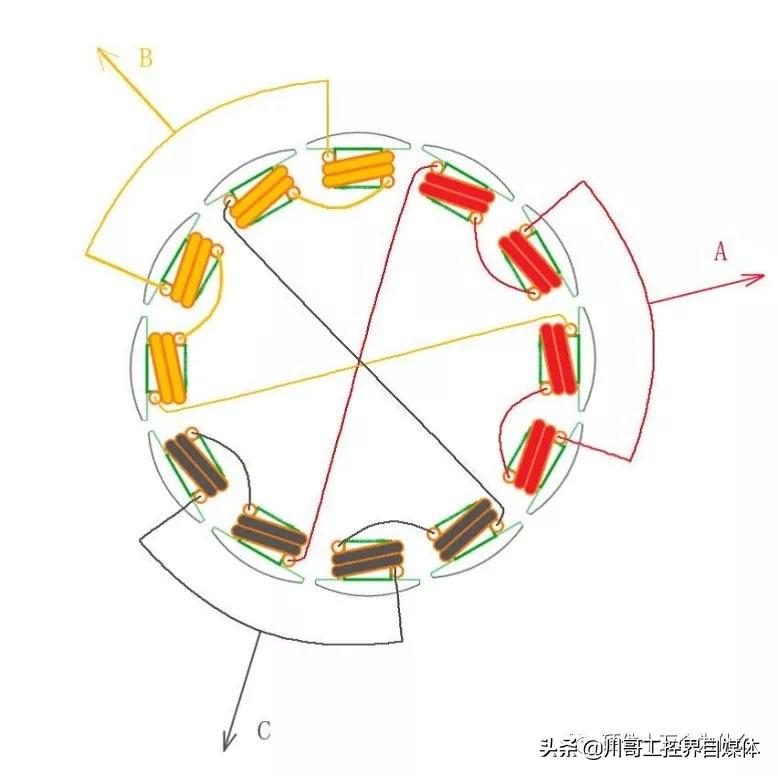 图为12绕组14极(即7对极),电机绕组绕发图。