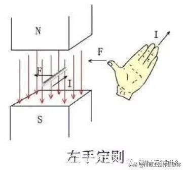 左手定则, 这个是电机转动受力分析的基础,简单说就是磁场中的载流导体,会受到力的作用。