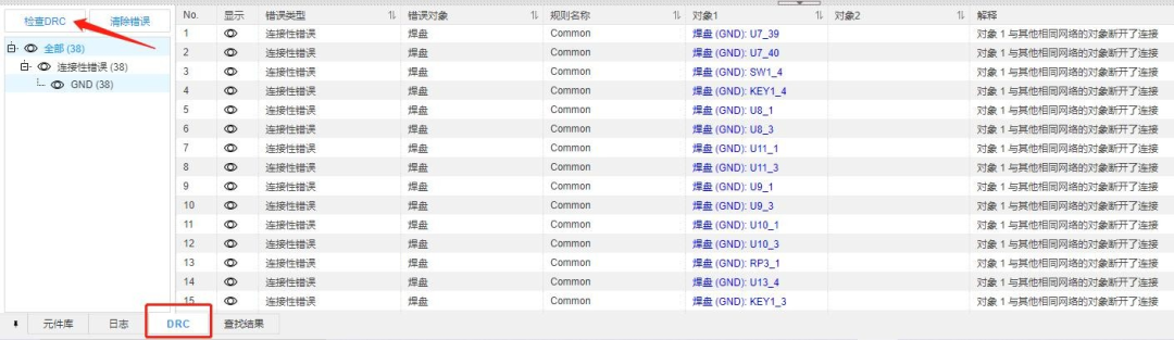 第一步:检查 DRC,根据提示解决 DRC 错误