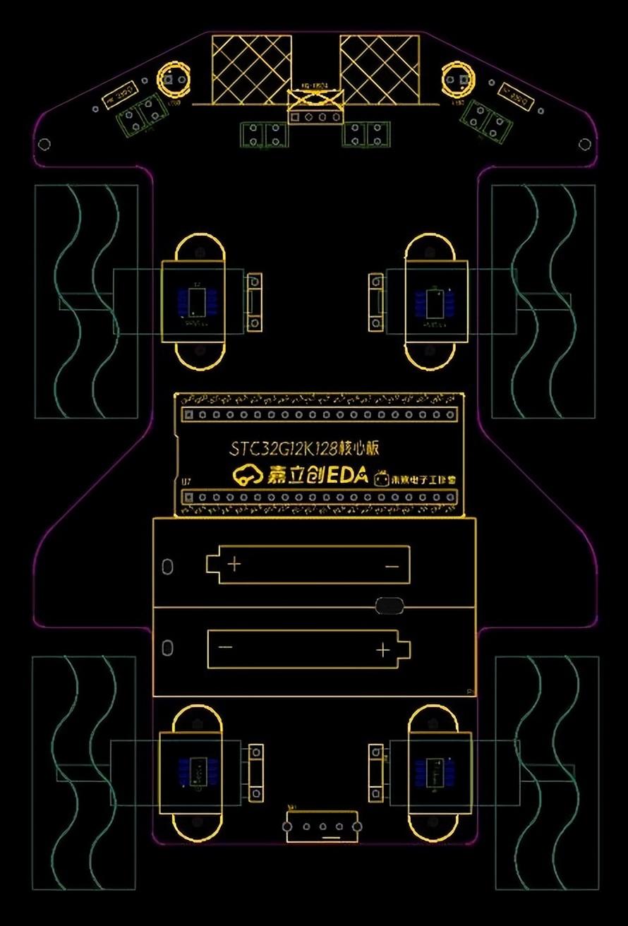智能小车的外形可以在专业的CAD 软件里面设计后将DXF 软件导入到嘉立创EDA 专业版里面作为板框层—即 PCB 的外形,也可以直接在软件里面根据自己的想法进行设计创造。
