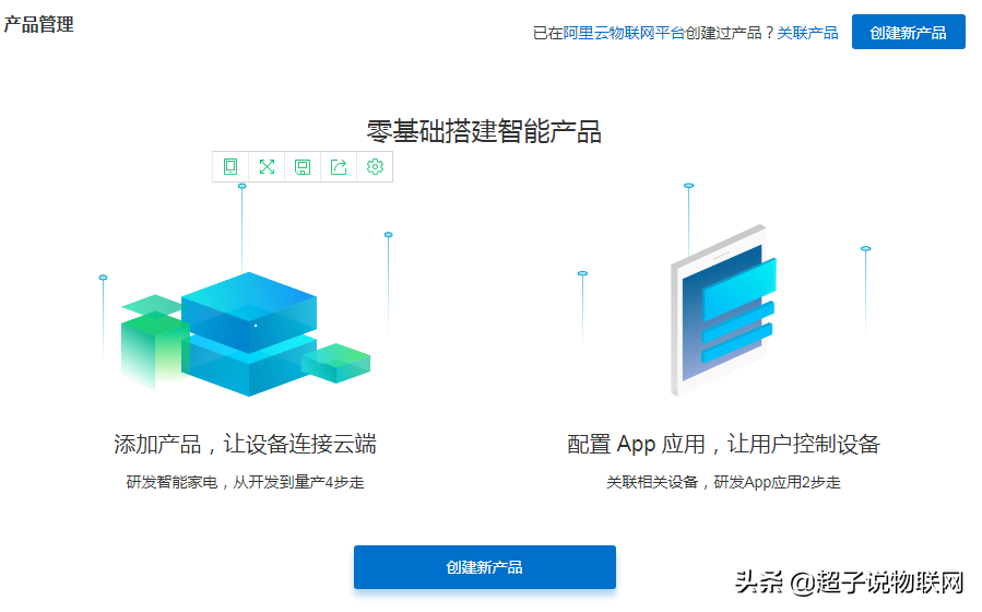 和使用STM32单片机做DIY设计时一样,我们使用阿里云生活物联网平台的公版APP,也就是云智能APP。我们打开上图中红圈所示的开关。