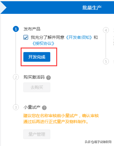 然后页面下方,我们要配置APP功能,同STM32单片机DIY时一样,我们主要设置多语言管理,填写品牌名称,设备名称,产品编号等等,大家根据喜好自己填一个就。最下方我们看到了天猫精灵,插座是天猫精灵支持的品类,所以可以直接绑定天猫精灵的账号,用天猫精灵控制开关,非常方便。然后我们点击下一步:批量投产。