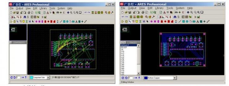 电路板的规则设计好以后,就可导入元件并布局。布局有自动布局和手动布局两种方式。若采用自动布局方式,只要在界面的菜单栏中选中项,弹出对话框,单击OK,就自动把元件布局于PCB板中了。而如果采用手动布局的方式,则在左下角的元件选择窗口中选中元件,在PCB板边框中适当位置单击左键,就可以把元件放入。