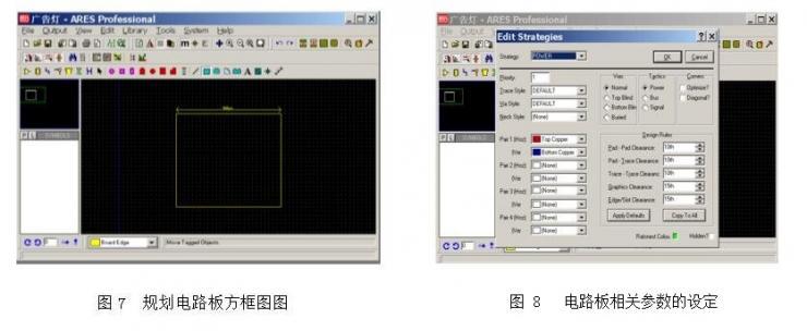 PCB板边框画好以后,就要设置电路板的相关参数。单击System中的Set Default Rules项,在弹出的对话框中设置规则参数,有焊盘间距、线与焊盘间距、线与线间距等一些安全允许值。然后在Tools中选中(布线规则)项,在弹出的对话框中单击Edit Strategies项,出现一个对话框如图8所示。在左上Strategy栏中分别选中POWER和SIGNAL,在下面的Pair1中选同一层。这样,就完成了在单层板中布线的设置。到此,对一些主要的参数设置就完成了。别的系统参数设置,可以在System和Tools中去设置完成。