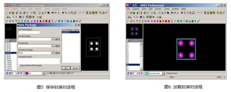 选中封装,用左键单击图标,出现保存对话框(如图5示),在New Package Name中键入要保存的元件封装名称(在此用KS);在Package Category(保存范畴)中选中Miscellaneous;在Package Type(封装类型)中选中Through Hole;在Package Sub-Category(保存子范畴)中选中Switches;单击OK,就把按钮封装保存到了USERPKG(用户自建封装库)库中。