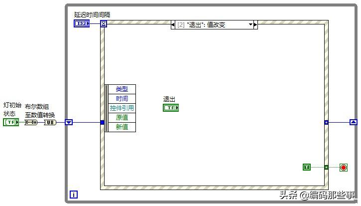 在前面板上点击退出程序按钮时,在事件结构的值改变事件中退出程序的运行,代码如下: