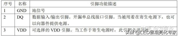 DS18B20为三引脚元件,外形同普通三极管,引脚功能详见下表。