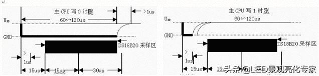 DS18B20有两种类型的写时序:写0时序和写1时序。