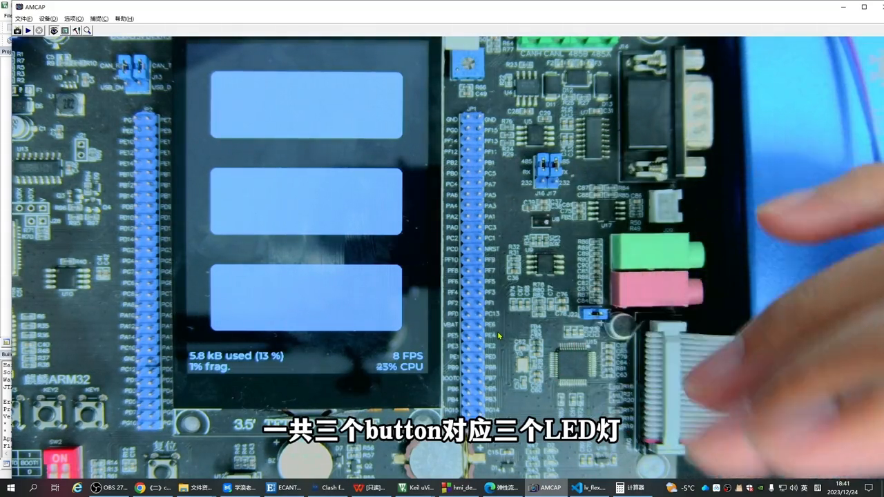 给大家看看,我们已经在开发板上将LVGL的GUI库移植进去了,现在显示的就是LVGL里面一个比较复杂的Demo。摄像头拍出来的画面颜色稍微有点浅,效果还可以。