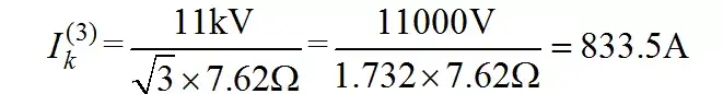 靠近母线处的线路三相短路电流最大,查阅《塔河油田母线等值阻抗表》,在最大运行方式下,10kV母线阻抗为7.62∠80.1°,三相短路电流为