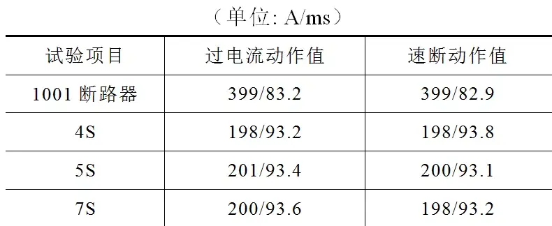 对1001断路器和4条出线的涌流控制器进行校验,校验方法:用继保仪给控制器输入二次电流,记录保护动作电流值,同时校验动作时间特性。6S线路的涌流控制器在输入110%保护定值电流不动作时,再逐步提升到10倍保护定值电流仍不动作,检查出涌流控制器损坏。控制器保护试验结果见表2。