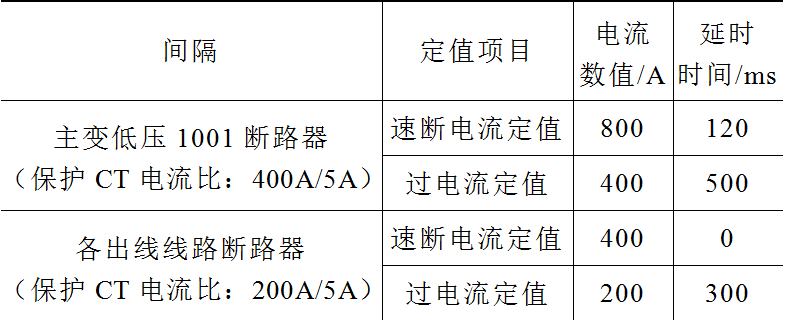 根据“可靠性、选择性、速动性和灵敏性”进行选择。已计算出短路电流值,结合涌流控制器二次定值固化特性,塔北变电站的保护整定首先保证可靠性,出线电流互感器电流比为200A/5A,进线电流互感器电流比为400A/5A。保护选择性通过涌流控制器的延时功能实现。