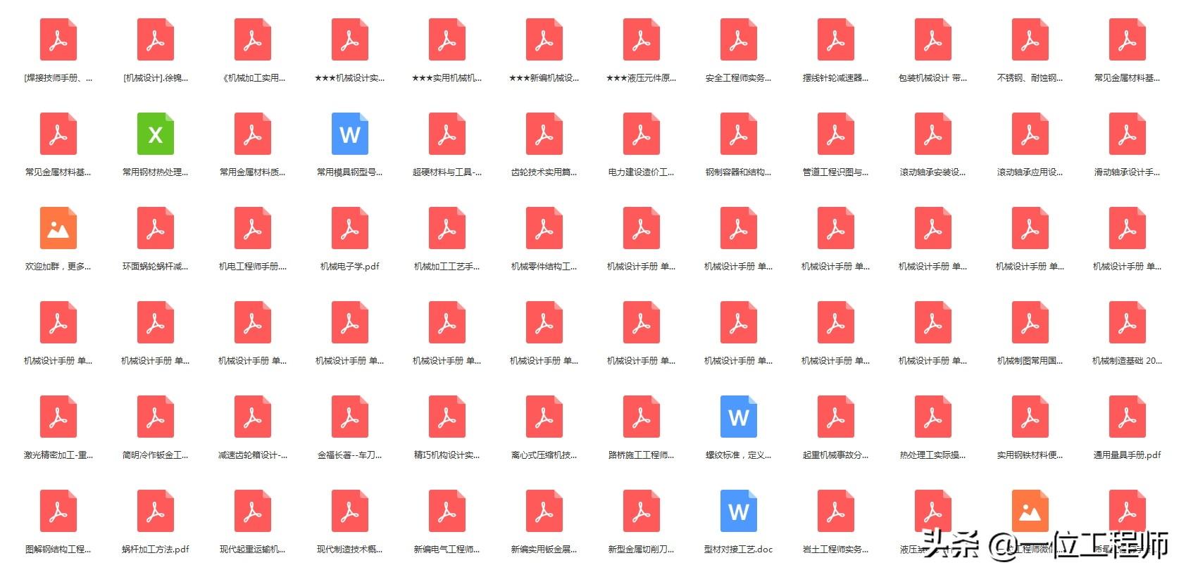 这1000G资料涉及的范围很广,具体来说包括机械设计、机械原理、模具、机械加工、材料类、电气行业、各种零件模型和非标等等领域,具体内容有:上千份文档类(各类机械设计手册、液压类手册、自动化类手册等等,所有历史文章的PPT源文件等)、常用的设计工具(一些自动计算表格)以及各类视频教程类,我相信这1000G资料对于提升你的能力一定会有很大的帮助。同时在你工作中遇到相关问题的时候,这些资料也能提供很好的指导作用。