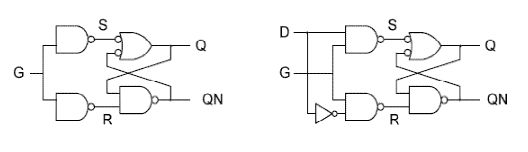然后在这个简单锁存器加上控制端G和一个输入端D就变成了D锁存器: