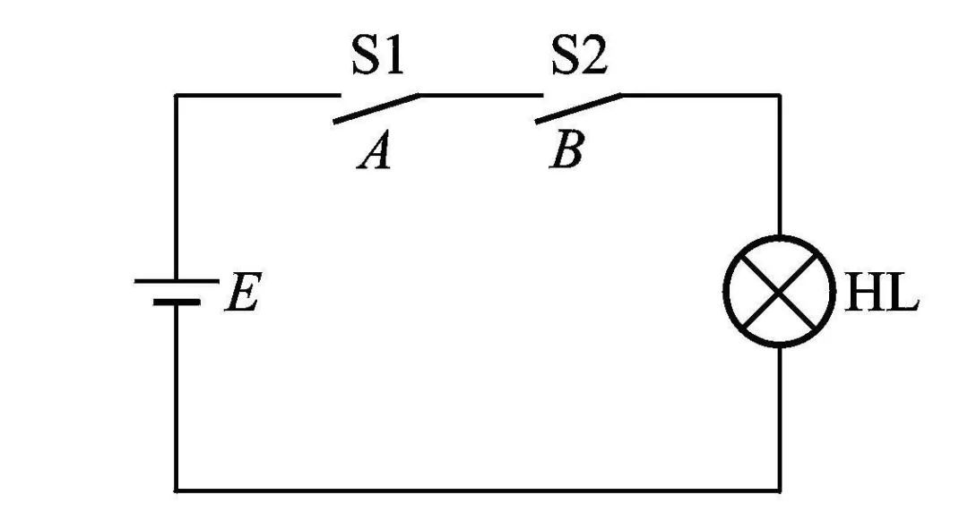 与门电路可以想象为两个串联开关控制一个灯泡,只有同时闭合两个开关,灯泡才会被点亮。开关表示晶体管的导通与截止,灯泡的点亮与熄灭表示电路输出的高低电平。