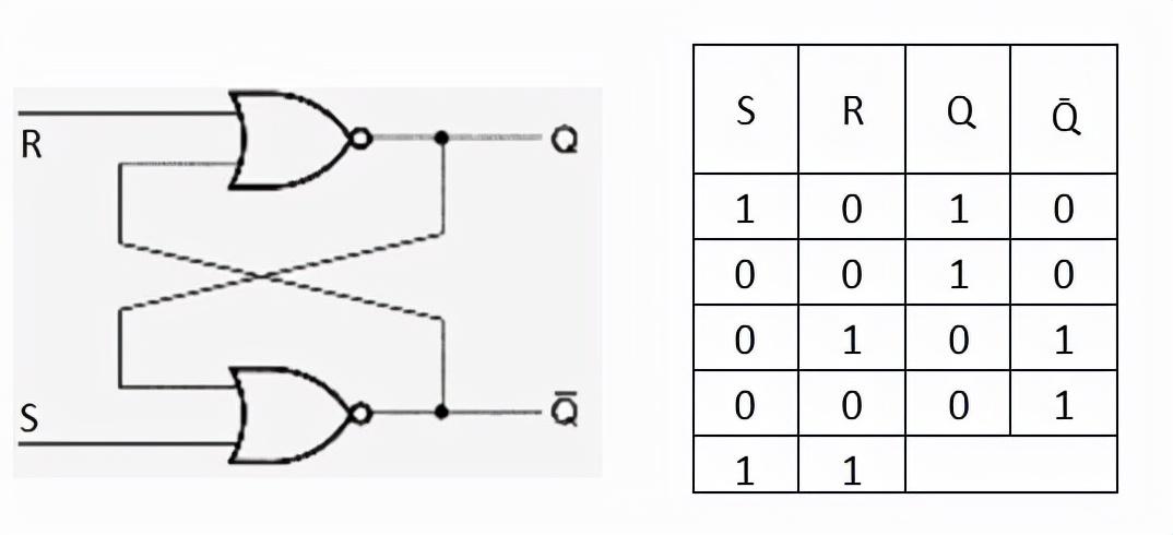 但是寄存器是怎么帮我们保存数据的呢?这就要锁存器(Latch)来帮助了,两个或非门组成了一个最简单的锁存器。