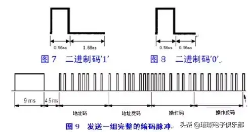 采用脉宽调制的串行码,以脉宽为0.565ms、间隔0.56ms、周期为1.125ms的组合表示二进制的“0”;以脉