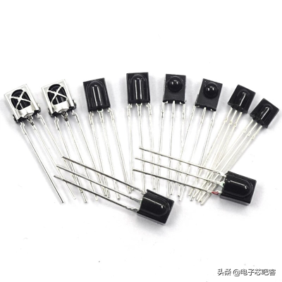选择一体化红外接收头作为红外信号的接收端,这是一种特殊的红外接收电路,它把红外接收管和放大电路集成到了一块,从外形上看只有一个三极管大小,如图