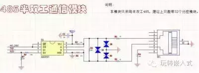 RS485半双工通信模块:可以通过选择端口选择数据的传输方向,带保护功率。此模块只能工作在5V.