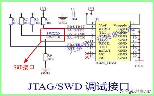 SWDIO --串行数据线,用于数据的读出和写入;SWDCLK --串行时钟线,提供所需要的时钟信号;一般来说,大多数单片机的JTAG接口和SWDIO接口是复用的,SWD也是用J-Link工具来实现的。所以在使用的时候,只需要在软件界面做一下选择,使用SWD方式还是JTAG方式,硬件上无需改动。除了J-Link外,意法半导体的ST-Link也是支持SWD模式的。