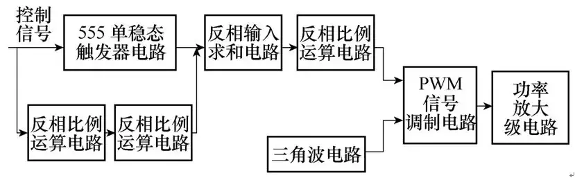 与常见的双电源切换电路不同,该电路通过单稳态触发器电路、反相输入求和电路、反相比例运算电路合成一个双电压信号,与高频三角波电路比较产生一个双占空比的脉宽调制信号,最后经功率放大级输出,实现初始阶段100%占空比脉宽调制信号使电磁铁线圈电流急速上升驱动衔铁高速运动,运动结束后又以10%占空比实现低功耗保持,避免了双电源切换电路设计的复杂性和实时性问题。