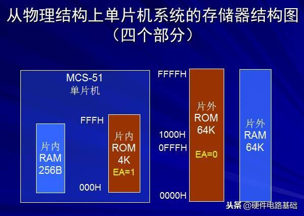从物理结构的角度讲,51单片机的存储系统可以分为四个存储空间:既片内ROM,RAM和片外ROM、RAM。