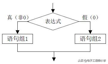 上述结构流程如图3-1所示:如果表达式的值为非0即真,则执行语句1,执行完语句1从语句2后开始继续向下执行;如果表达式的值为0即假,则跳过语句1而执行语句2。