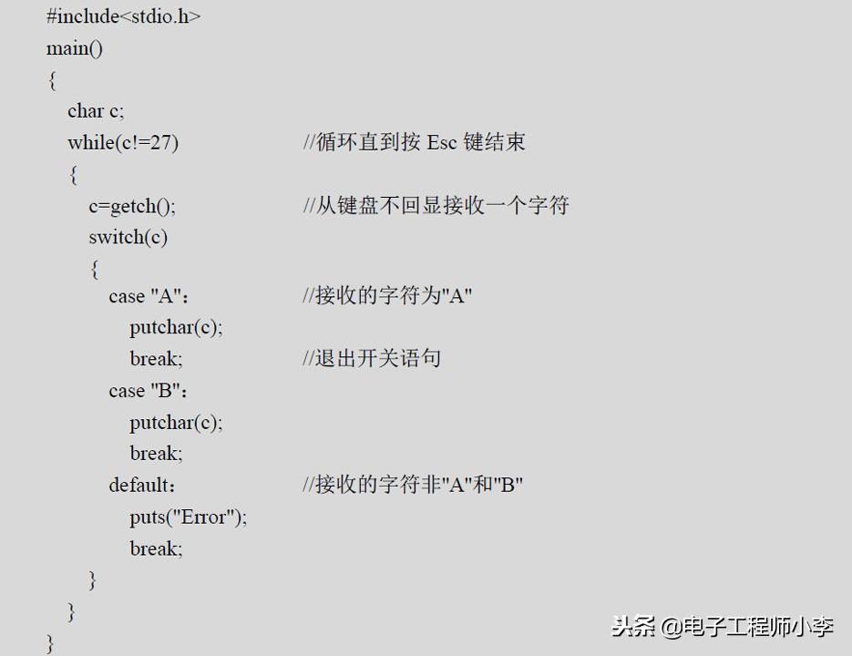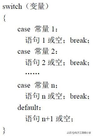 在编写程序时,经常会碰到按不同情况分转的多路问题,这时可用嵌套if-else-if语句来实现,但if-else-if语句使用不方便,并且容易出错。对这种情况,应该用开关语句。
