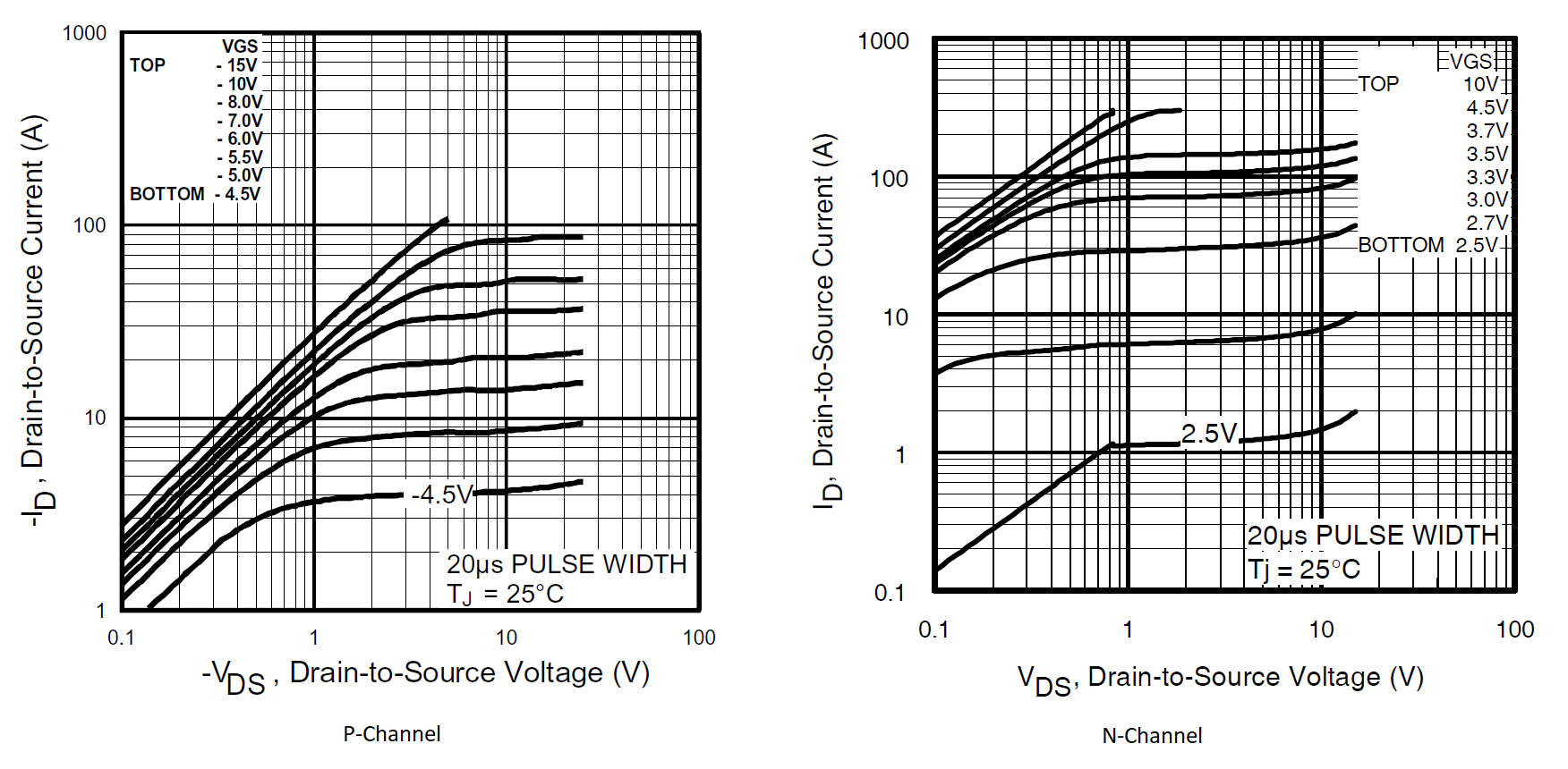 下面是两种 MOS 的典型用法。P 沟道的 MOS 一般 S 接电源正极,然后 Vgs 需要一个负电压来打开电流通道,而 N 沟道的 S 极一般接电源的负极,Vgs 需要一个正电压来打开电流通道。