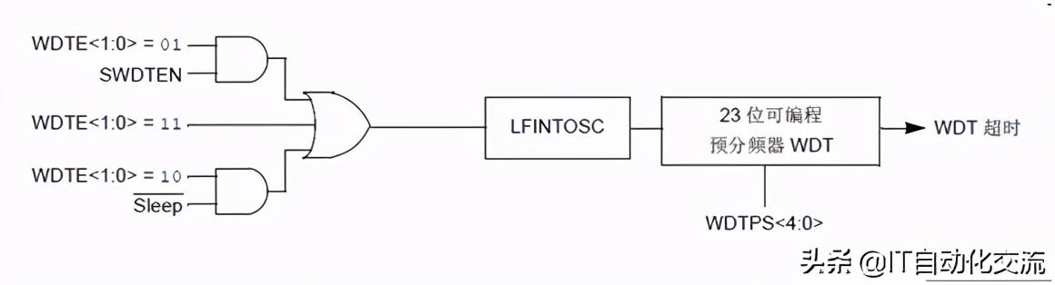 (注:任何复位,进入休眠模式,从休眠模式唤醒,振荡器故障都会使WDT清0,且复位后默认超时周期为2秒)