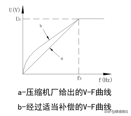 所有的交流异步电动机都满足以上这个公式,交流变频压缩机也同样如此。简单的来说,交流变频是通过改变压缩机的供电频率f,这样,在p与s不变的情况下,压缩机运转速度就会跟随频率的变化而变化。