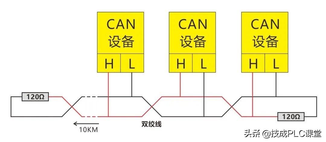CAN总线网络主要挂在CAN_H和CAN_L,各个节点通过这两条线实现信号的串行差分传输,为了避免信号的反射和干扰,还需要在CAN_H和CAN_L之间接上120欧姆的终端电阻。