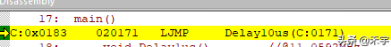 这里有个长转移指令LJMP,它要转移到C:0171行去执行Delay10us这个函数。
