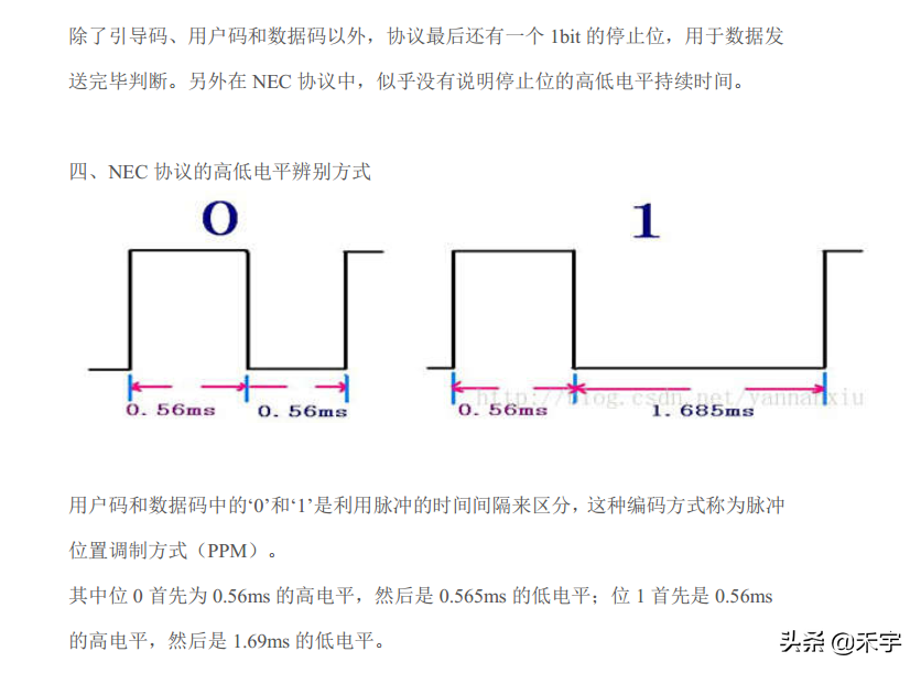 if(irdata[k]>6) // 判断这位数据是0还是1:(0:1.12/0.256=4.4)(1:2.25/0.256=8.8)