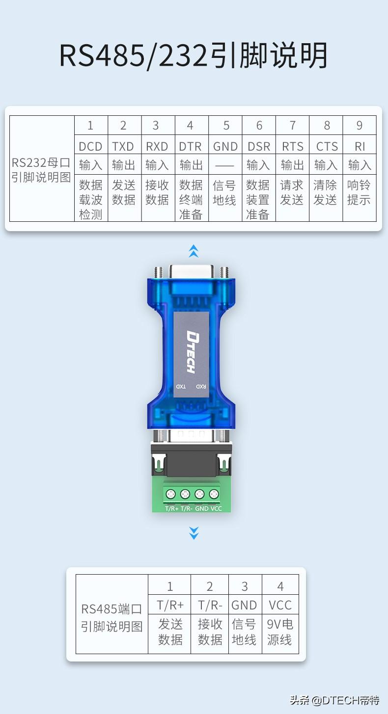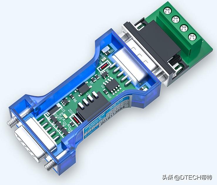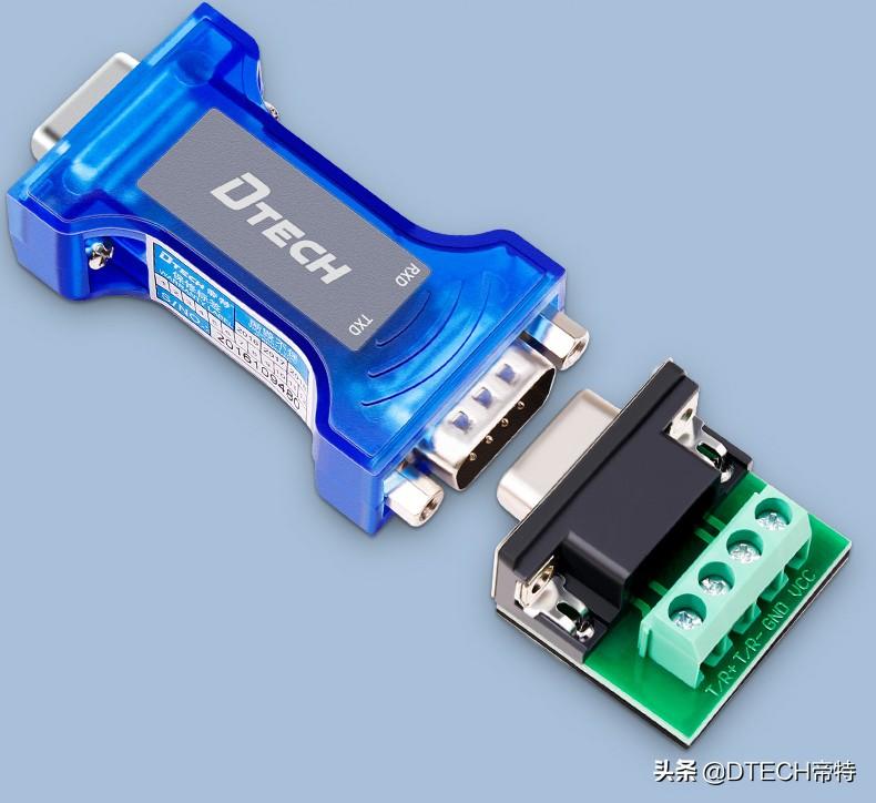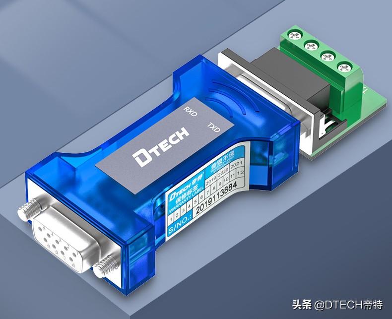 帝特无源RS232转RS485双向转换器,即是RS232转RS485也是RS485转RS232转换器,采用“RS232电荷泵”驱动,所以不需要外部电源供电。