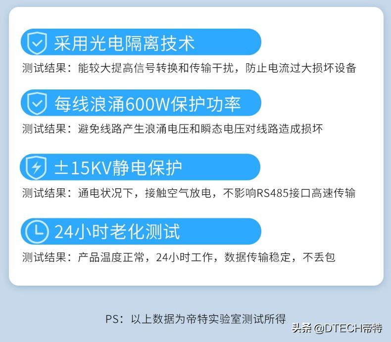 它采用进口芯片,更耐用,内置TVS保险二极管,支持RS485和RS232协议设备远程传输,远距离传输可达1200米,信号稳定无损转换。