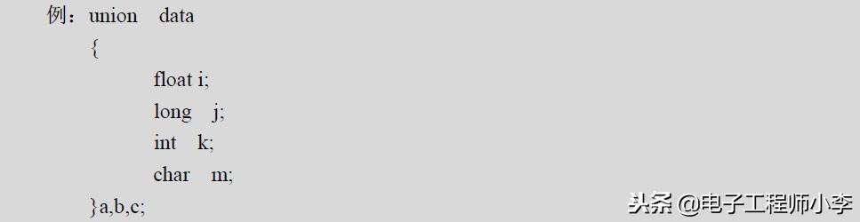 也可以将类型定义与变量定义分开。即先定义一个union data类型,再将a、b、c定义为union data类型的变量。