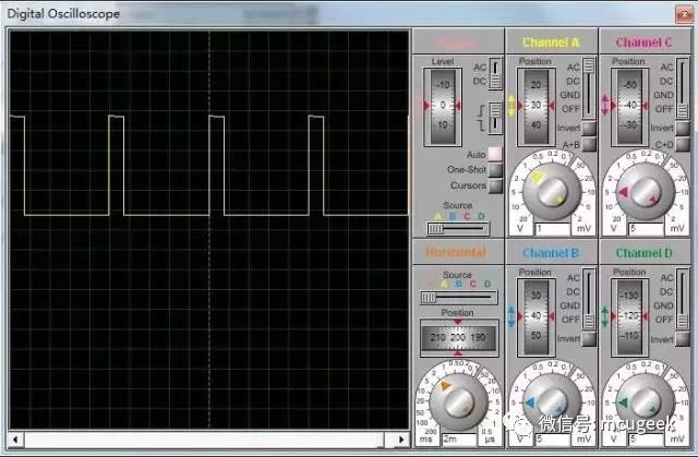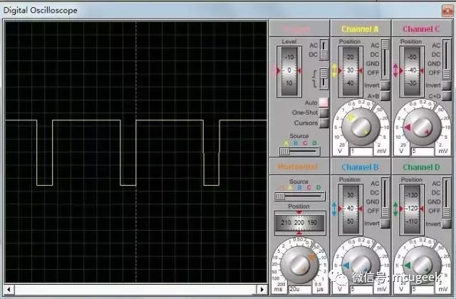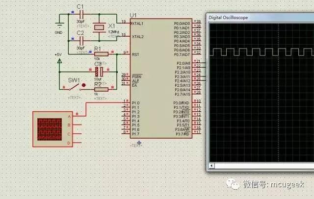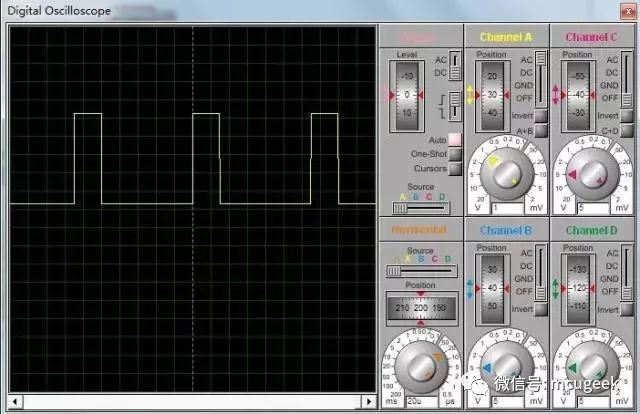 可见,用这种延时函数的方法就能简单地模拟出pwm输出。但是这种方法的缺点也相当明显。当程序除了要输出pwm波还要执行其他操作比如键盘扫描、显示等操作时,需要占用CPU一定的机器周期,这样就会影响pwm的准确度。现在很少会用到这种方法,接下来要介绍的是比较常用的方法。