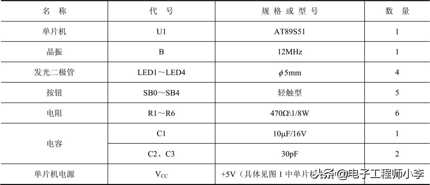 (2)按钮控制灯亮硬件电路元器件(见表3)。