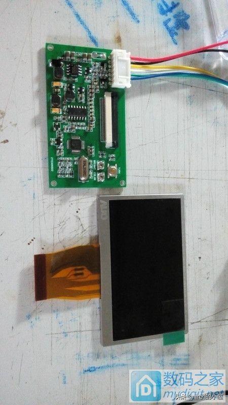 这是买来的液晶显示屏和驱动板。驱动板上面有几个调整按键和电位器,右上角的按键是控制图像翻转的,画面可以上下颠倒和左右镜像;两个电位器一个调整画面亮度一个调整图像色彩。