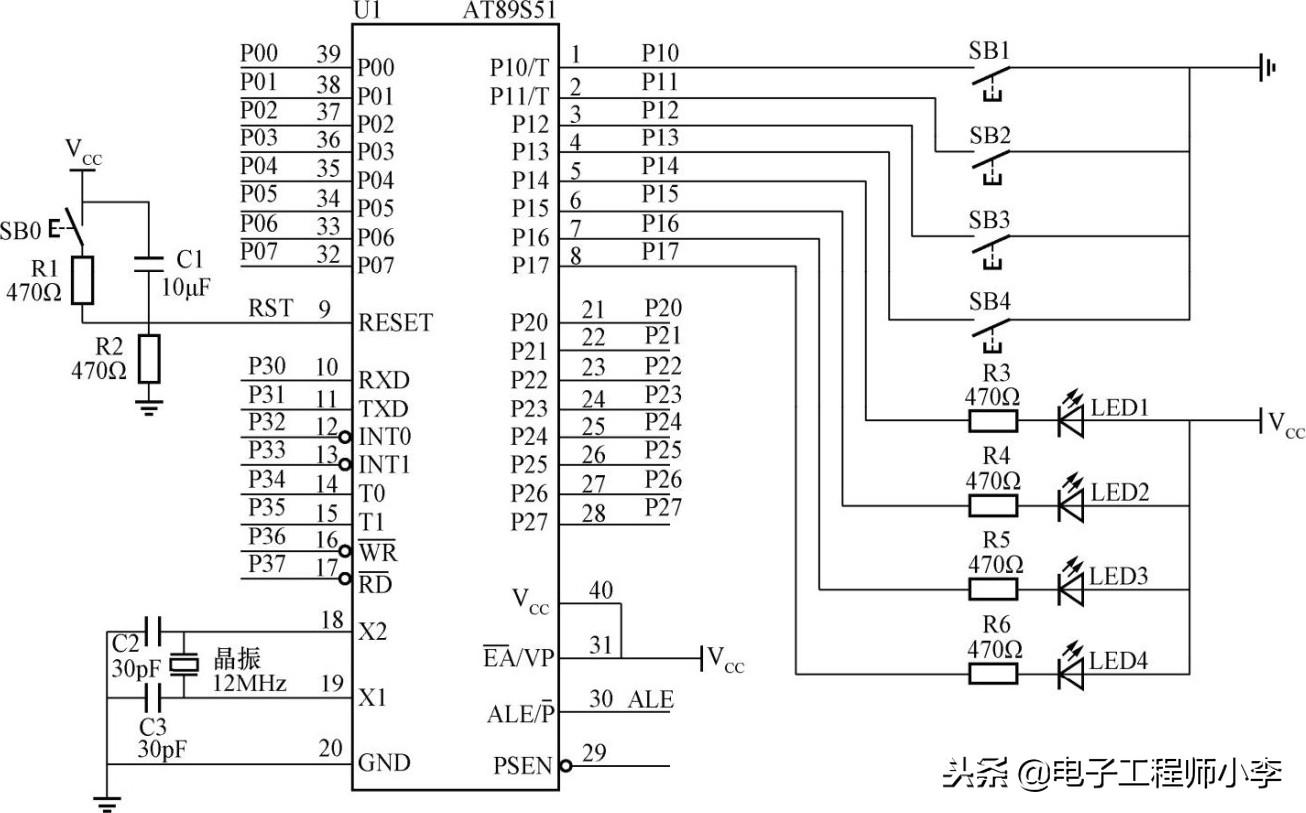 51单片机实例讲解,由按钮控制灯亮程序
