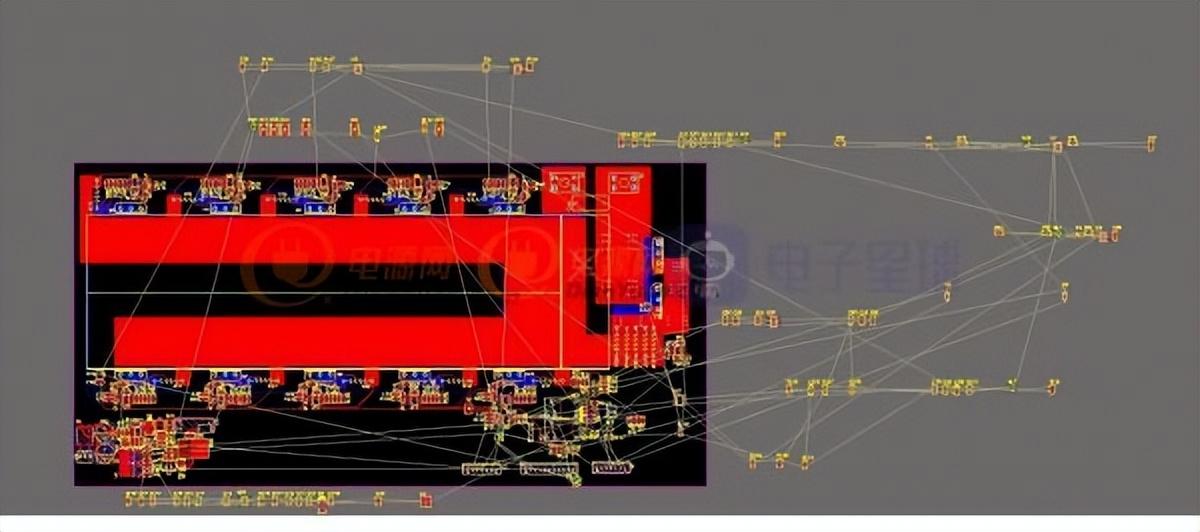 这第一版PCB画的我脑壳疼,很多时候走线长度,走线方式要和布局相互妥协,交叉线也多......中间散热片占了老大的面积,其他的小芯片只能在一旁瑟瑟发抖,板子尺寸都有340*180了。