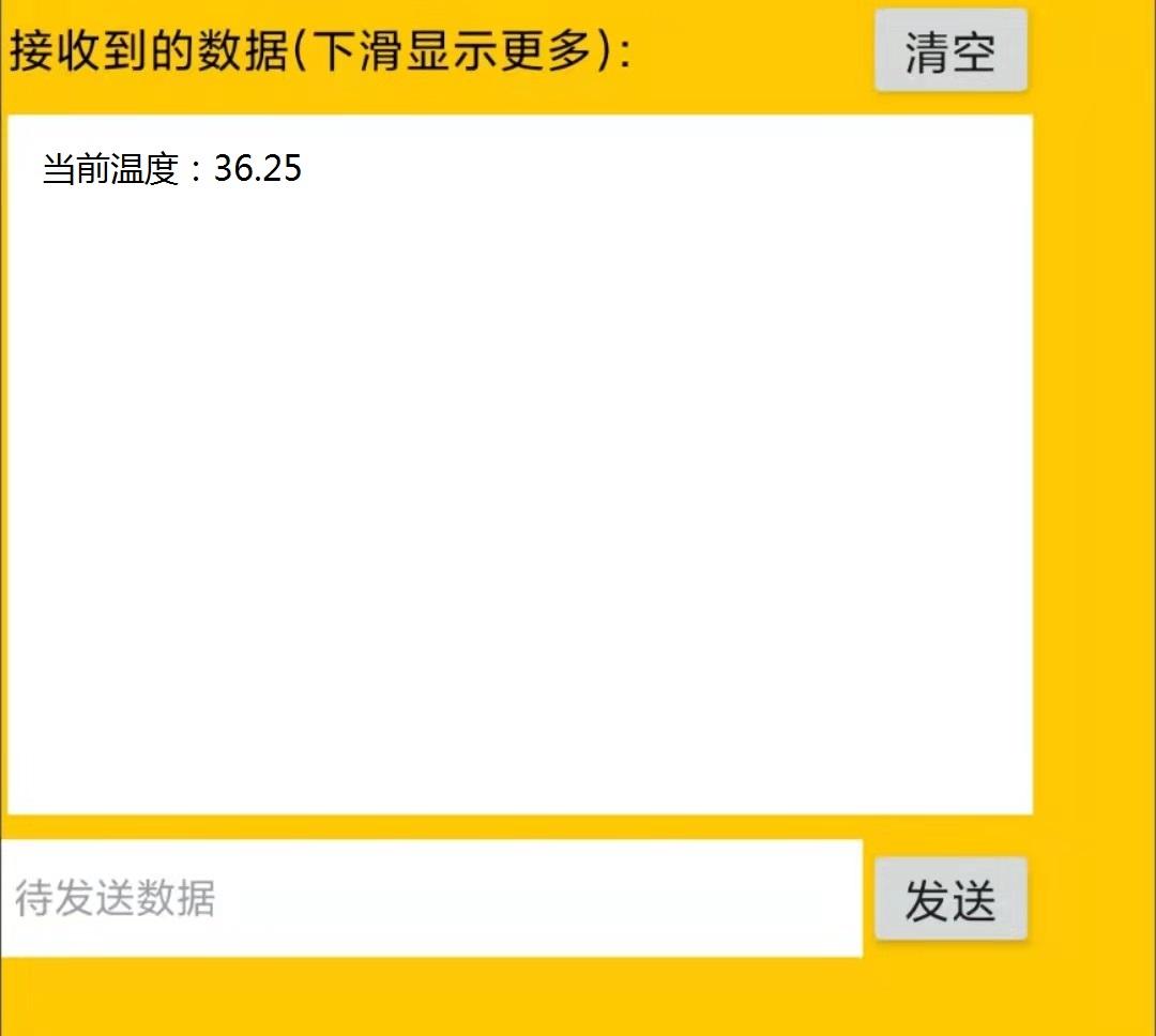 蜗牛端将DS18B20采集到的温度值通过蓝牙串口发送到手机端,手机端通过接收后在“交互”窗口进行显示。